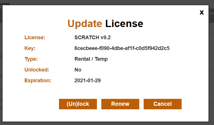 Note that if a license is un-locked a little un-locked icon is showing in the license key table.