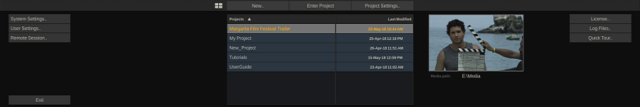 Below the poster frame, Live FX displays the media path of the project. Each project has a media path. Note however that this does not mean that you cannot load media outside that path into the project. If the project does not have a valid media path or if the media path is inaccessible, Live FX will display that in yellow and you can not enter that project before the path has been set in the Project properties dialog or access to the path has been restored.