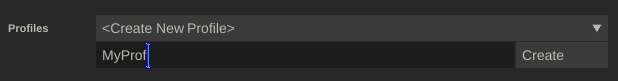 In the Profiles option list control at the top of the dialog, you can select one of the available Profiles or create a new profile by selecting the <Create New Profile> option. When selected, you enter the name for the new profile and click the Create button.