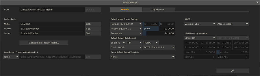 Note: The framerate of the Project controls what values will be assigned to information such as Timecode, and how EDLs will be interpreted. It is important that this value be set correctly before any import or conform operations are performed.